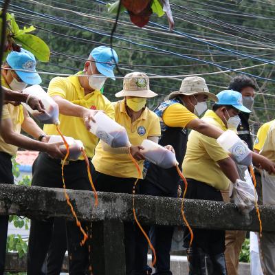 อบจ.สงขลา ร่วมกับ กองพลพัฒนาที่ 4 นำเครื่องจักรขุดทรายเปิดปากคลองวางถุงบิ๊กแบ็ก จับมือภาคีท้องถิ่น โยน EM Ball เพื่อฟื้นฟูน้ำเสีย ชวนชุมชนริมคลองเลิกทิ้งขยะ หวังคลองสำโรงกลับมาใสสะอาดอย่างยั่งยืน