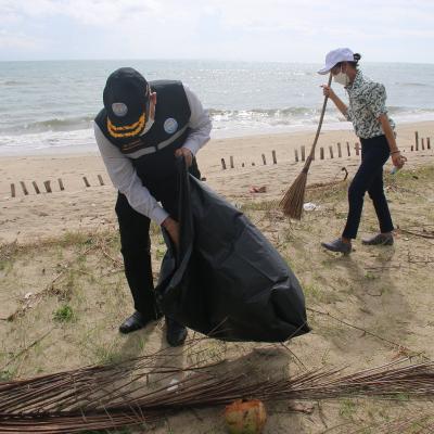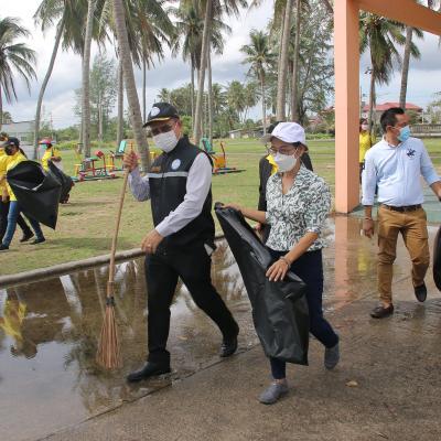 ในกิจกรรม อบจ.สงขลา ร่วมกับ จังหวัดสงขลา สมาคมผู้นำสตรีพัฒนาชุมชนไทย กรมพัฒนาชุมชน โดยมีการร่วมกันทำสาธารณประโยชน์ ร่วมเก็บขยะ ทำความสะอาด บริเวณชายหาดม่วงงาม