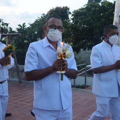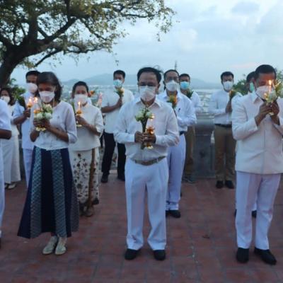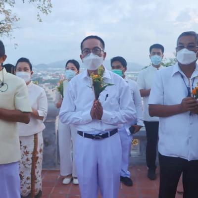 ร่วมประกอบพิธีทางพระพุทธศาสนา และร่วมเวียนเทียน รอบพระเจดีย์หลวงเขาตังกวน เนื่องในวันสงขลา ประจำปี 2565 เพื่อรำลึกถึงคุณงามความดีของบรรพบุรุษชาวสงขลา และเสริมสร้างมงคลชีวิตให้กับตนเอง และครอบครัว