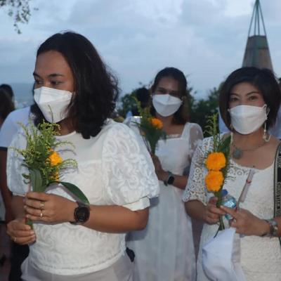 พุทธศาสนิกชนชาวสงขลา ร่วมพิธีเวียนเทียน เนื่องในวันสงขลา 10 มีนาคม ประจำปี 2565 ณ พระธาตุหลวงเขาตังกวน เมืองสงขลา