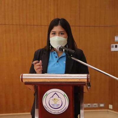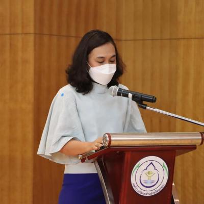 นางจารุวรรณ ฉิมเรศ ผู้อำนวยการกองการศึกษา อบจ.สงขลา // กล่าวรายงาน