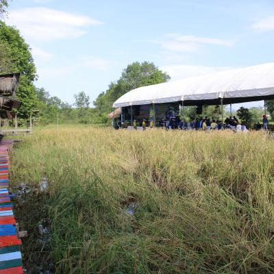 ภายในงาน มีนิทรรศการ ผลิตภัณฑ์ของกลุ่มเกษตรกร การแสดงนาฎศิลป์สร้างสรรค์ ชุดรับขวัญข้าว การแสดงผ้าไทย ของกลุ่มสตรีในพื้นที่จังหวัดสงขลา แขกผู้มีเกียรติ ร่วมกิจกรรมเกี่ยวข้าว กิจกรรมปล่อยปลา การมอบรางวัลแข่งขันเกี่ยวข้าว