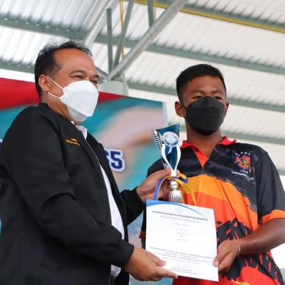 นายเชิดเกียรติ เมธีลักษณ์ ที่ปรึกษานายก อบจ.สงขลา // กล่าวขอบคุณคณะกรรมจัดการแข่งขันและนักกีฬา พร้อมมอบถ้วยรางวัล/เกียรติบัตร ให้นักกีฬา