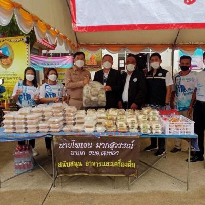 เป็นตัวแทน นายไพเจน มากสุวรรณ์ นายกองค์การบริหารส่วนจังหวัดสงขลา และเจ้าหน้าที่ นำ ข้าวกล่อง จำนวน 600 กล่อง