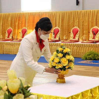 โดยมีนายเจษฎา จิตรัตน์ ผู้ว่าราชการจังหวัดสงขลา เป็นประธานในพิธีฯ // พร้อมกล่าวถวายอาศิรวาทราชสดุดีและถวายความเคารพ.