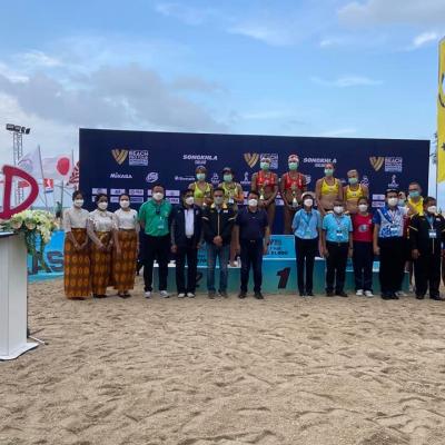 นายชัยวุฒิ ผ่องแผ้ว รองนายกองค์การบริหารส่วนจังหวัดสงขลา ร่วมเป็นเกียรติในพิธีปิดการแข่งขันวอลเลย์บอลชายหาด Volleyball World Beach Pro Tour Futures Songkhla Open