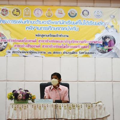 จังหวัดสงขลา จัดกิจกรรมการปฐมนิเทศและเปิดฝึกอบรมตามโครงการเพิ่มทักษะด้านอาชีพแก่นักเรียนที่ไม่ได้เรียนต่อหลังจากจบการศึกษาภาคบังคับ ประจำปีงบประมาณ พ.ศ.2565