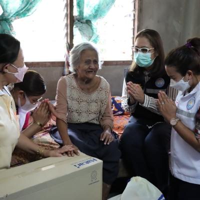 โดยผู้สูงอายุ ผู้ป่วยติดเตียง ที่ได้รับมอบสิ่งของช่วยเหลือ ในเขตอำเภอนาหม่อม มีจำนวน 7 คน