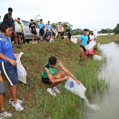 นายก อบจ.สงขลา ปล่อยปลาลงสู่อ่างเก็บน้ำภายในโรงเรียนเกาะแต้วพิทยาสรรค์