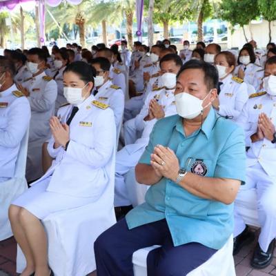 เข้าร่วมกิจกรรมเฉลิมพระเกียรติ สมเด็จพระนางเจ้าสุทิดา พัชรสุธาพิมลลักษณ พระบรมราชินี เนื่องในวันเฉลิมพระชนมพรรษา 3 มิถุนายน 2565 ในพิธีทำบุญตักบาตรพระสงฆ์ 45 รูป เพื่อถวายพระราชกุศล