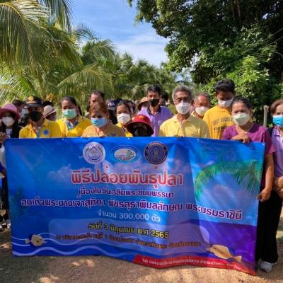 ปล่อยพันธุ์ปลาน้ำจืด จำนวน 300,000 ตัว เพื่อเฉลิมพระเกียรติสมเด็จพระนางเจ้าสุทิดา พัชรสุธาพิมลลักษณ พระบรมราชินี และเพื่อถวายเป็นพระราชกุศล รวมทั้งเป็นการอนุรักษ์ทรัพยากร เพิ่มพูนปริมาณสัตว์น้ำในแหล่งน้ำให้มีความอุดมสมบูรณ์มากขึ้น เนื่องในวันเฉลิมพระชนมพรรษา 3 มิถุนายน 2565