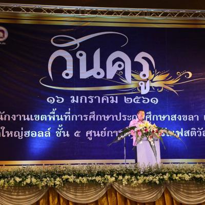 16 มกราคม 2561 เวลา 10.45 น. สำนักงานเขตพื้นที่การศึกษาประถมศึกษา เขต 2 จัดกิจกรรมเนื่องใน "วันครู" แห่งชาติ โดยมี นายนิพนธ์ บุญญามณี นายกองค์การบริหารส่วนจังหวัดสงขลา เป็นวิทยากรบรรยายพิเศษ ในหัวข้อ"อบจ.สงขลา กับทิศทางการพัฒนาการศึกษาในอนาคต" ณ หาดใหญ่ฮอลล์ ชั้น 5 ศูนย์การต้าเซ็นทรัลเฟสติวัล อ.หาดใหญ่ จ.สงขลา พร้อมด้วย ผู้อำนวยการสำนักงานเขตพื้นที่การศึกษาสงขลา เขต 2 และบุคลากรครูทางการศึกษาเข้าร่วมในพิธีเปิด และรับฟังการบรรยายพิเศษ ซึ่งทาง อบจ.สงขลา ได้เห็นความสำคัญของการศึกษา จึงสนับสนุนการจัดกิจกรรมเนื่องในวันครูครั้งนี้ และในฐานะที่ อบจ.สงขลา เป็นองค์กรสาธารณะ และทำกิจกรรมสาธารณะ จึงพร้อมให้การสนับสนุน เพื่อที่จะร่วมกันพัฒนา ด้านการเรียนการสอนในจังหวัดสงขลา เพื่อลูกหลานของเรา โดยเฉพาะในเรื่องของภาษา และในเรื่องของการใช้และพัฒนาเทคโนโลยี ซึ่งต่อไปจะเป็นอนาคตของประเทศไทย เพื่อนำสงขลาสู่คุณภาพในด้านการจัดการศึกษา