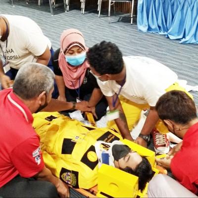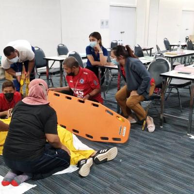 กิจกรรมวันที่ 10 มิ.ย.2565 อบรมภาคทฤษฎีและภาคปฏิบัติเรื่องการจัดการทางแพทย์ในสถานการณ์สาธารณภัย และ ทำการทดสอบภาคปฏิบัติในสถานการณ์จำลอง โดยพยาบาลวิชาชีพชำนาญการจากโรงพยาบาลหาดใหญ่ เป็นวิทยากร