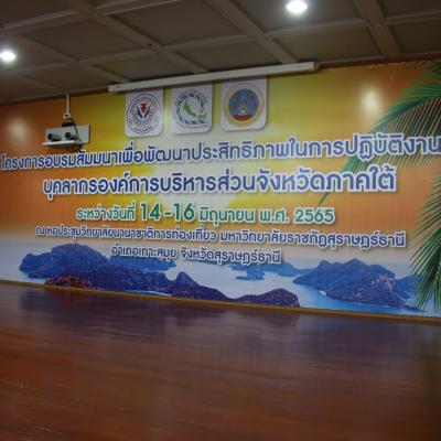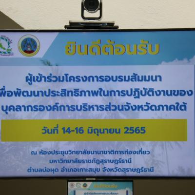 วันที่ 15 มิถุนายน 2565 อบจ.สงขลา สมาชิกสภาองค์การบริหารส่วนจังหวัดสงขลา และหัวหน้าส่วนราชการ ร่วมโครงการอบรมสัมมนาเพื่อพัฒนาประสิทธิภาพในการปฏิบัติงานของบุคลากรองค์การบริหารส่วนจังหวัดภาคใต้ ระหว่างวันที่ 14 – 16 มิถุนายน 2565 ณ ห้องประชุมวิทยาลัยนานาชาติการท่องเที่ยว มหาวิทยาลัยราชภัฏสุราษฎร์ธานี ต.บ่อผุด อ.เกาะสมุย จ.สุราษฎร์ธานี นายฉัตรชนัย โนต๊ะยศ ปลัดองค์การบริหารส่วนจังหวัด รักษาราชการแทน นายกองค์การบริหารส่วนจังหวัดสุราษฎร์ธานี กล่าวต้อนรับผู้เข้าร่วมโครงการอบรมสัมมนา นายเศรษฐ์ อัลยุฟรี นายกองค์การบริหารส่วนจังหวัดปัตตานี ในฐานะประธานสมาพันธ์องค์การบริหารส่วนจังหวัดภาคใต้ กล่าวรายงานวัตถุประสงค์ของโครงการอบรมสัมมนา และนายประเวศ ไทยประยูร รองผู้ว่าราชการจังหวัดสุราษฎร์ธานี กล่าวเปิดโครงการอบรมสัมมนา