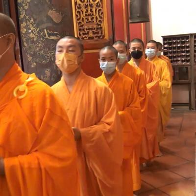 โดยในพิธีมี พระภิกษุปานชัย เถี่ยนหงือ เจ้าอาวาส และพระจากวัดถาวรวรารามหาดใหญ่ เดินทางมาทำพิธีเวียนเทียนสะเดาะเคราะห์เสริมดวงชะตา ตามประเพณีจีน โดยใช้ดวงเทียนอยู่ในถ้วยแก้ว มาใช้ในพิธีเวียนเทียนสะเดาะเคราะห์เสริมดวงชะตา โดยผู้ที่มาร่วมพิธีจะเดินตามหลังขบวนพระ และสามเณรไปโดยรอบ ศาลเจ้าพ่อหลักเมือง และศาลเจ้าพ่อกวนอูที่อยู่ใกล้กัน จำนวน 3 รอบ และมีพระ สามเณรสวดมนต์อยู่ตลอดเวลาในขณะที่เดินเวียนเทียนจนครบ 3 รอบ