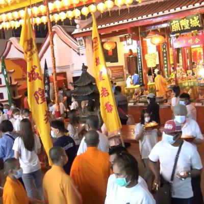 สงขลา จัดพิธีเวียนเทียนสะเดาะเคราะห์เสริมดวงชะตา ตามประเพณีจีน ในงานสมโภช 180 ปี เจ้าพ่อหลักเมืองสงขลา