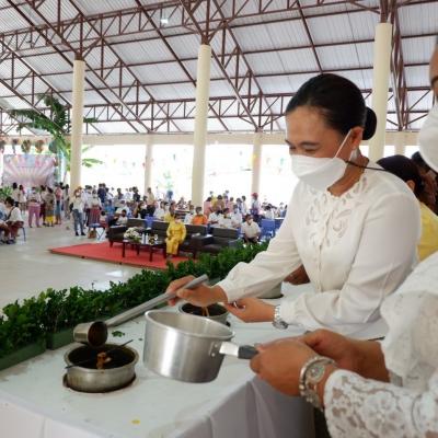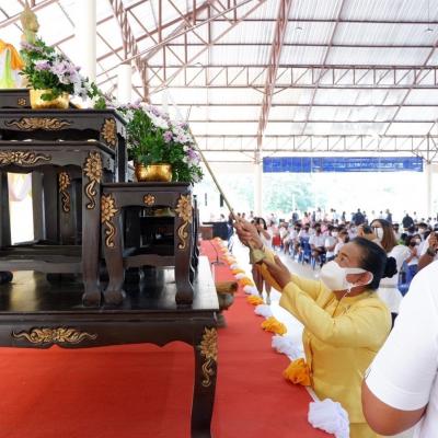 นางพรเอื้อ เชื้อแหลม ที่ปรึกษานายก อบจ.สงขลา // เป็นประธานในพิธีเปิด โครงการจัดงานประเพณีหล่อเทียนพรรษา ประจำปี 2565
