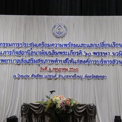 วันที่ 6 กรกฎาคม 2565 เวลา 09.00 น. นายไพเจน มากสุวรรณ์ นายกองค์การบริหารส่วนจังหวัดสงขลา เป็นประธานเปิดกิจกรรมการประชุมเตรียมความพร้อมและแลกเปลี่ยนเรียนรู้การถ่ายโอนภารกิจสถานีอนามัยเฉลิมพระเกียรติ 60 พรรษา นวมินทราชินี และโรงพยาบาลส่งเสริมสุขภาพตำบลให้แก่องค์การบริหารส่วนจังหวัด ณ ห้องประชุมรัศมี แกรนด์ บอลรูม โรงแรมต้นอ้อย แกรนด์ หาดใหญ่ โดยมีคณะผู้บริหาร และสมาชิกสภาองค์การบริการส่วนจังหวัดสงขลาเขตอำเภอหาดใหญ่ ร่วมในพิธีเปิด