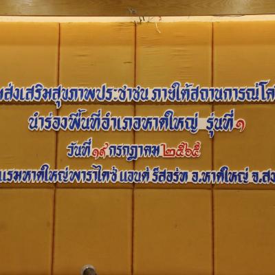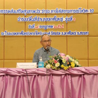วันที่ 19 กรกฎาคม 2565 เวลา 09.00 น. นายไพเจน มากสุวรรณ์ นายกองค์การบริหารส่วนจังหวัดสงขลา มอบหมายให้นายอับดลรอหมาน กาเหย็ม รองนายกองค์การบริหารส่วนจังหวัดสงขลา เป็นประธานเปิดกิจกรรมส่งเสริมสุขภาพภาคประชาชนภายใต้สถานการณ์ยุคโควิด – 19 นำร่องพื้นที่อำเภอหาดใหญ่ รุ่นที่ 1 ณ โรงแรมหาดใหญ่พาราไดส แอนด์ รีสอร์ท อ.หาดใหญ่ จ.สงขลา พร้อมด้วย