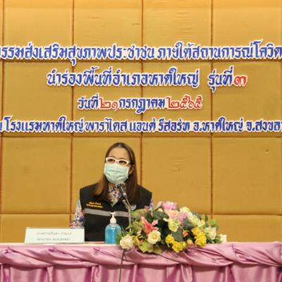 วันที่ 21 กรกฎาคม 2565 เวลา 09.00 น. นายไพเจน มากสุวรรณ์ นายกองค์การบริหารส่วนจังหวัดสงขลา มอบหมายให้นางสาวปรินดา ปาลาเร่ รองนายกองค์การบริหารส่วนจังหวัดสงขลา เป็นประธานเปิดกิจกรรมส่งเสริมสุขภาพภาคประชาชนภายใต้สถานการณ์ยุคโควิด – 19 นำร่องพื้นที่อำเภอหาดใหญ่ รุ่นที่ 3 ณ โรงแรมหาดใหญ่พาราไดส แอนด์ รีสอร์ท อ.หาดใหญ่ จ.สงขลา พร้อมด้วย