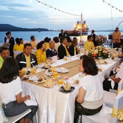 ค่ำวันที่ 24 กรกฎาคม 2561 องค์การบริหารส่วนจังหวัดสงขลา โดยนายนิพนธ์ บุญญามณี นายกองค์การบริหารส่วนจังหวัดสงขลา นำคณะผู้บริหาร รองประธานสภา ผู้อำนวยการกอง ข้าราชการและเจ้าหน้าที่ องค์การบริหารส่วนจังหวัดสงขลา เลี้ยงรับรอง คุณใหม่ สิริกิติยา เจนเซน ธิดาในทูลกระหม่อมหญิงอุบลรัตนราชกัญญา สิริวัฒนาพรรณวดี ซึ่งเดินทางมาเยือนเมืองสงขลา ดูแหล่งโบราณสถานของทั้งสามเมือง และสามวัฒนธรรม ตลอดเวลา 2 วัน ที่ผ่านมา ก่อนจะเดินทางกลับกรุงเทพมหานคร ในวันที่ 25 กรกฎาคม 2561 นี้ ด้วยบรรยากาศบนเรือซีเบสนำล่อง ชมธรรมชาติของทะเลสาบสงขลา พร้อมกับมอบของที่ระลึกให้แก่คุณใหม่ สิริยากร เจนเซ่น บนเรือซีเบส โดยมี นายศักระ กบิลกาญจน์ รองผู้ว่าราชการจังหวัดสงขลา นางนฤมล พัฒนรัฐ นายกเหล่ากาชาดจังหวัดสงขลา นางกัลยา บุญญามณี ปลัดเทศบาลนครสงขลา นายกเทศบาลนครสงขลา นายกเทศบาลเมืองสิงหนคร ภาคีคนรักสงขลา เข้าร่วมในงานเลี้ยงรับรอง