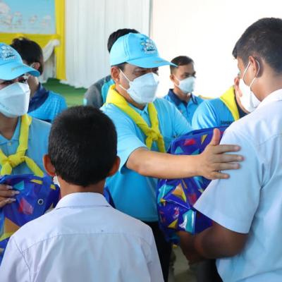 ในโอกาสนี้ ผู้ว่าราชการจังหวัดสงขลา ได้กล่าวให้โอวาทกับผู้เข้าร่วมกิจกรรม พร้อมทั้งได้มอบหน้ากากอนามัยให้กับผู้อำนวยการโรงเรียนเกาะแต้วพิทยาสรรค์ และโรงเรียน อบจ.สงขลาพิทยานุสรณ์ จำนวน 2,000 ชิ้น นอกจากนี้ยังได้มอบถุงยังชีพให้กับเด็กนักเรียนที่เรียนดี แต่ขาดแคลนทุนทรัพย์ จำนวน 26 ราย ซึ่งได้รับการสนับสนุนจากองค์การบริหารส่วนจังหวัดสงขลา จากนั้นนำผู้เข้าร่วมกิจกรรมร่วมกันปลูกต้นสักทอง จำนวน 24 ต้น ปล่อยพันธุ์ปลาน้ำจืด จำนวน 100,000 ตัว และร่วมกันปรับปรุงภูมิทัศน์ ทำความสะอาดเก็บขยะมูลฝอย ตัดหญ้า และตัดแต่งกิ่งไม้ เป็นต้น เพื่อสร้างสำนึกและความตระหนักถึงความสำคัญในการอนุรักษ์ทรัพยากรธรรมชาติและสิ่งแวดล้อม