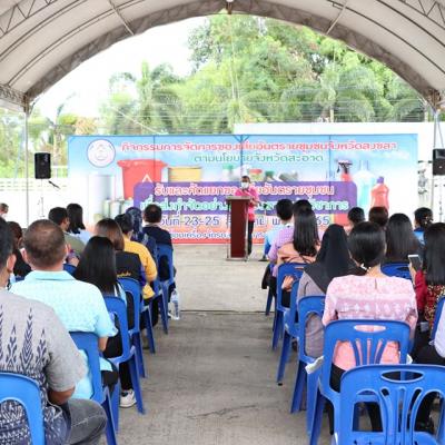 ในโอกาสนี้ นายพนมเทียน เส้งวั่น ท้องถิ่นจังหวัดสงขลา // ได้มอบนโยบายให้กับตัวแทนองค์กรปกครองส่วนท้องถิ่นในจังหวัดสงขลา ได้ดำเนินการคัดแยก และสามารถกำจัดของเสียอันตรายชุมชนได้อย่างเป็นระบบ รวมถึงสร้างความตระหนักให้กับประชาชนในพื้นที่จังหวัดสงขลา ได้มีส่วนร่วมปรับเปลี่ยนพฤติกรรมในการคัดแยกของเสียอันตรายชุมชน