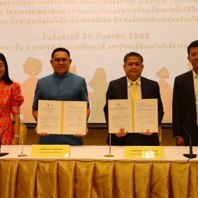 นายกอบจ.สงขลา และ อธิการบดีมหาวิทยาลัยเทคโนโลยีราชมงคลศรีวิชัย ร่วมลงนามบันทึกข้อตกลงความร่วมมือ เพื่อดำเนินโครงการพัฒนาพัฒนากำลังคนด้วยเทคโนโลยีนวัตกรรม เพื่อรองรับอุตสาหกรรมการท่องเที่ยวชายฝั่งวิถีใหม่ (Coastal Tourism)