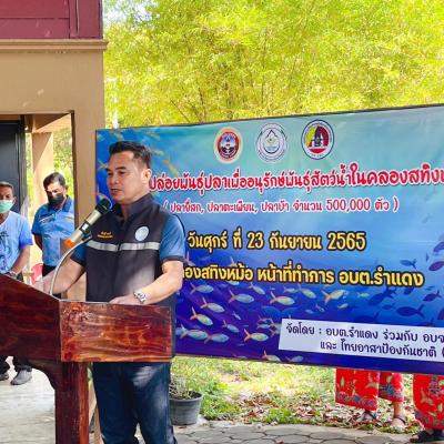 วันศุกร์ที่ 23 กันยายน 2565 นายไพเจน มากสุวรรณ์ นายกองค์การบริหารส่วนจังหวัดสงขลา มอบหมายให้ นายชัยวุฒิ ผ่องเเผ้ว รองนายกองค์การบริหารส่วนจังหวัดสงขลาเป็นประธานในพิธีเปิดโครงการผลิตพันธุ์สัตว์น้ำเพื่อปล่อยสู่เเหล่งน้ำธรรมชาติ (กิจกรรมปล่อยพันธุ์ปลาน้ำจืดจำนวน 500,000 ตัว)