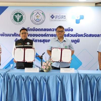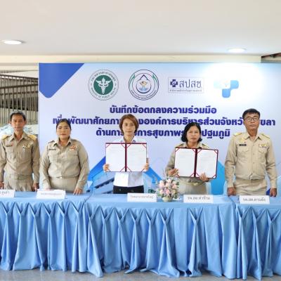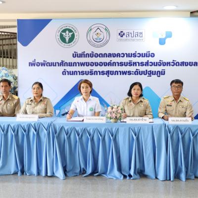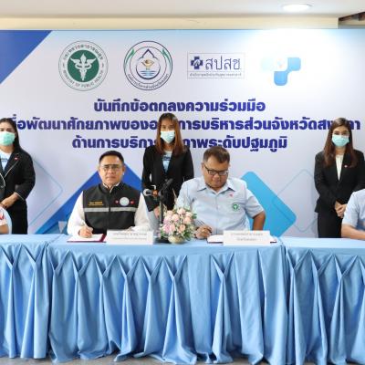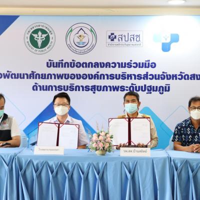 วันที่ 5 ตุลาคม 2565 เวลา 09.00 น. นายไพเจน มากสุวรรณ์ นายกองค์การบริหารส่วนจังหวัดสงขลา ร่วมลงนามบันทึกข้อตกลงความร่วมมือเพื่อพัฒนาศักยภาพขององค์การบริหารส่วนจังหวัดสงขลา ในด้านการสาธารณสุขมูลฐาน และการบริการสุขภาพระดับปฐมภูมิ กับสำนักงานสาธารณสุขจังหวัดสงขลา ซึ่งมีหน่วยบริการประสงค์ถ่ายโอนภารกิจไปยัง อบจ.สงขลา จำนวน 23 แห่ง โดยมีส่วนราชการที่เกี่ยวข้อง ร่วมเป็นสักขีพยาน