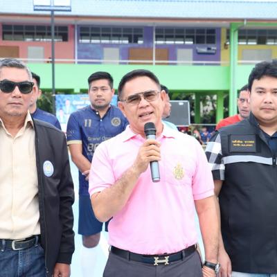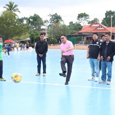 นายไพเจน มากสุวรรณ์ นายกองค์การบริหารส่วนสงขลาเป็นประธานในพิธีเปิดงาน Grand Openning เปิดสนามฟุตซอลโรงเรียนบ้านควนดินแดง