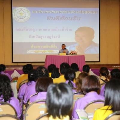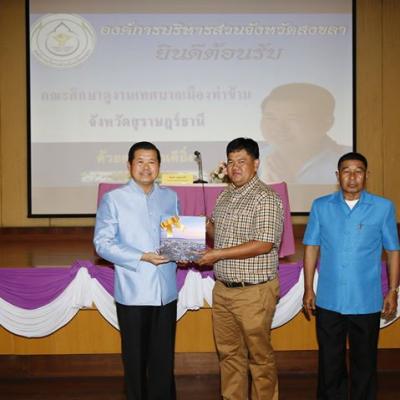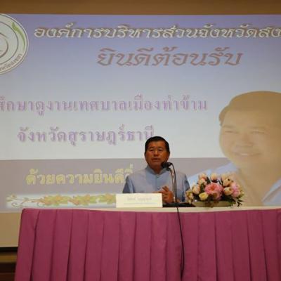 นายก อบจ.สงขลา ให้การต้อนรับ นายอนุวัตร์ รจิตานนท์ นายกเทศมนตรีเทศบาลเมืองท่าข้าม จังหวัดสุราษฏร์ธานี
