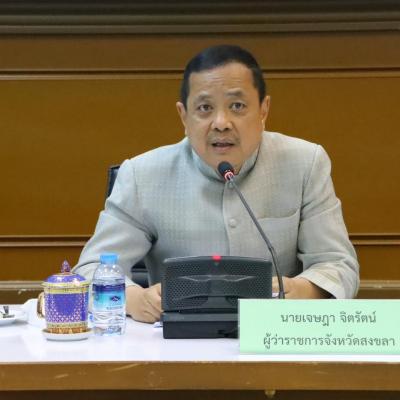 โดยมี นายเจษฎา จิตรัตน์ ผู้ว่าราขการจังหวัดสงขลา เป็นประธานในการประชุม // พร้อมด้วย นายวรณัฎฐ์ หนูรอต รองผู้ว่าราชการจังหวัดสงขลา และผู้บริหารองค์กรปกครองส่วนท้องถิ่นในจังหวัดสงขลา เข้าร่วมประชุม