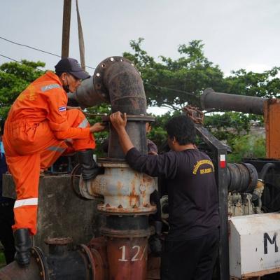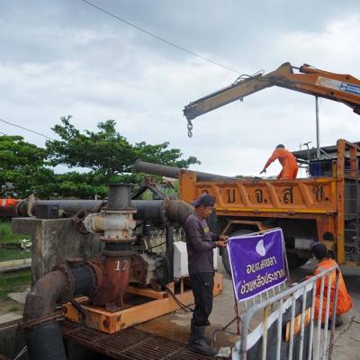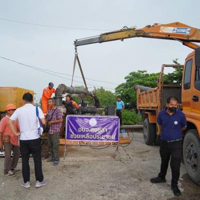 ลงพื้นที่ตรวจติดตามการดำเนินการติดตั้งเครื่องสูบน้ำ บริเวณท่าเทียบเรือประมงใหม่ ถนนสงขลาพลาซ่า เขตเทศบาลนครสงขลา อำเภอเมืองสงขลา จังหวัดสงขลา เพื่อเป็นการป้องกันบรรเทาเหตุ และเพิ่มประสิทธิภาพในการเร่ง