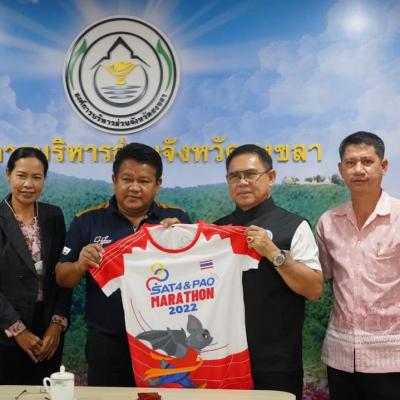 วันที่ 18 ตุลาคม 2565 นายพรรณภพ อุ่นเสียม ผู้อำนวยการสำนักงานการกีฬาแห่งประเทศไทย ภาค 4 เข้าพบนายไพเจน มากสุวรรณ์ นายกองค์การบริหารส่วนจังหวัดสงขลา เพื่อเชิญร่วมเป็นเจ้าภาพ และสนับสนุนการจัดกิจกรรม “SAT 4 & PAO MARATHON 2022” ประจำปี 2565 ที่จะจัดขึ้นในวันอาทิตย์ที่ 11 ธันวาคม 2565 ณ สนามกีฬาเมืองหลักภาคใต้ (พรุค้างคาว) อ.หาดใหญ่ จ.สงขลา โดยมีผู้เข้าร่วมกิจกรรม จำนวน 5,000 คน