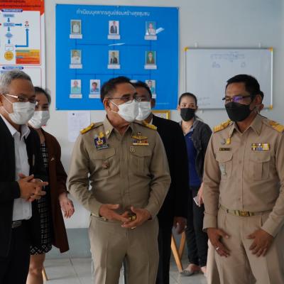 ในโอกาสนี้ ปลัดกระทรวงพัฒนาสังคมและความมั่นคงของมนุษย์ ได้มอบอาหาร น้ำดื่ม เป็นขวัญและกำลังใจแก่เจ้าหน้าที่ผู้ปฏิบัติงาน ณ ศูนย์ซ่อมสร้างสุขชุมชนวิทยาลัยเทคนิคหาดใหญ่ อ.หาดใหญ่ จ.สงขลา