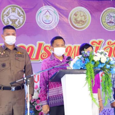 โดยมี นายบุญเลิศ ดำจำนงค์ ปลัดอาวุโส อำเภอบางกล่ำ // กล่าวรายงานในพิธีปิด