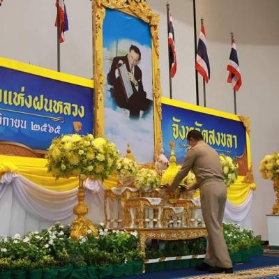 นายเชิดเกียรติ เมธีลักษณ์ ที่ปรึกษานายกองค์การบริหารส่วนจังหวัดสงขลา ร่วมในพิธีวางพานพุ่มดอกไม้สดถวายราชสักการะพระบาทสมเด็จพระบรมชนกาธิเบศร มหาภูมิพลอดุลยเดชมหาราช บรมนาถบพิตร เนื่องใน “วันพระบิดาแห่งฝนหลวง” ประจำปี 2565
