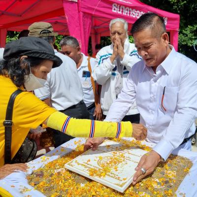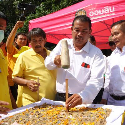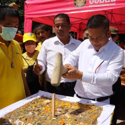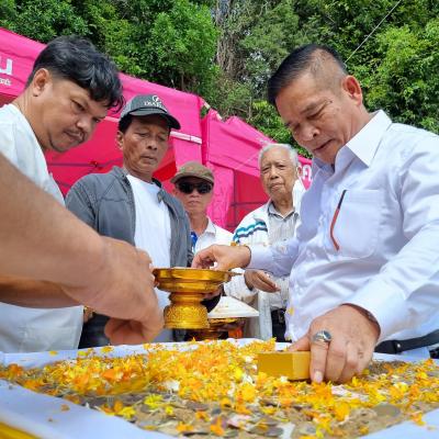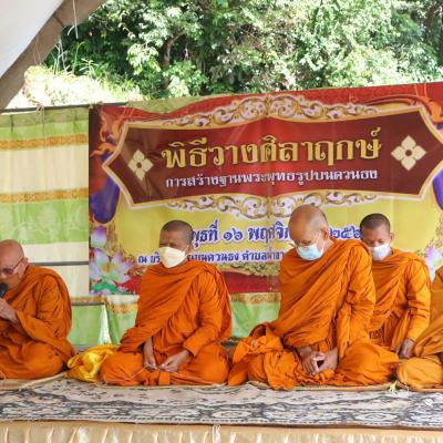พิธีวางศิลาฤกษ์ การสร้างฐานพระพุทธรูปบนควนธง