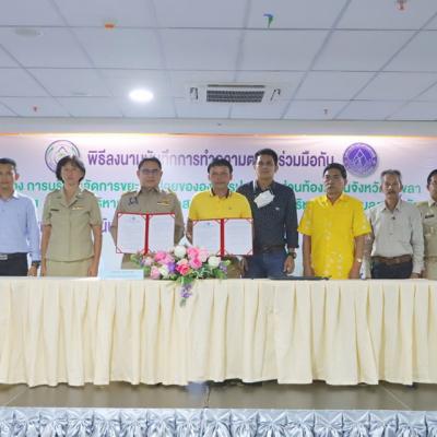 การประชุมชี้แจงการดำเนินงานโครงการจัดการขยะมูลฝอยองค์การบริหารส่วนจังหวัดสงขลา และพิธีลงนามบันทึกการทำความตกลงร่วมมือกันจัดทำบริการสาธารณะขององค์กรปกครองส่วนท้องถิ่น เรื่อง การบริหารจัดการขยะมูลฝอยขององค์กรปกครองส่วนท้องถิ่นในจังหวัดสงขลา ระหว่างองค์การบริหารส่วนจังหวัดสงขลา กับองค์การบริหารส่วนตำบลสนามชัย