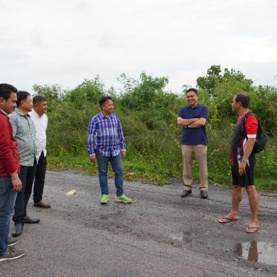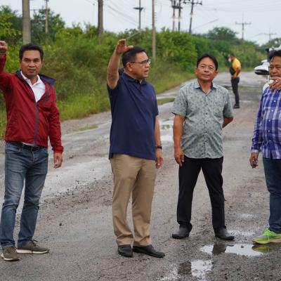 และผู้นำชุมชน ลงพื้นที่บริเวณถนนสายปากบาง-ระโนด ต.ท่าบอน อ.ระโนด จ.สงขลา เพื่อสำรวจถนนที่ชำรุดเนื่องจากในช่วงฤดูมรสุมมีฝนตกหนัก ทำให้ผิวถนนชำรุดเป็นหลุมเป็นบ่อ เสี่ยงต่อการเกิดอุบัติเหตุในการสัญจรไป-มา