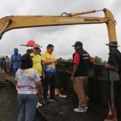 อบจ.สงขลา จึงได้ประสานไปยังส่วนบริหารเครื่องจักรกลที่ 7 สำนักเครื่องจักรกล กรมชลประทาน ขอสนับสนุนเครื่องจักรกล รถขุดบูมยาว มาตักวัชพืชและเศษขยะที่ขวางทางไหลของน้ำอยู่ใต้สะพานออก เพื่อให้การระบายน้ำได้ดีขึ้น และนายกไพเจน ขอบคุณทางส่วนบริหารเครื่องจักรกลที่ 7 สำนักเครื่องจักรกล กรมชลประทาน ที่นำเครื่องจักรมาช่วยบรรเทาความเดือนร้อนแก่พี่น้องชาวสงขลา