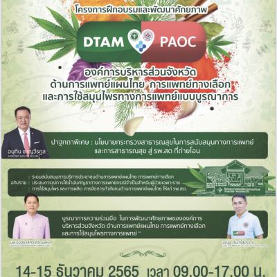 โครงการนี้จัดโดยกรมการแพทย์แผนไทยและการแพทย์ทางเลือก ร่วมกับสมาคมองค์การบริหารส่วนจังหวัด แห่งประเทศไทย โดยมีวัตถุประสงค์ เพื่อให้ผู้เข้าร่วมอบรมได้มีความรู้ความเข้าใจด้านการแพทย์ให้แก่บุคลากรด้านสาธารณสุขและผู้ที่เกี่ยวข้องที่ปฏิบัติงานในองค์การบริหารส่วนจังหวัด