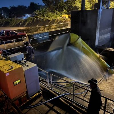 วันที่ 18 ธันวาคม 2565 นายชูชาติ รักจิตร รองอธิบดีฝ่ายก่อสร้าง กรมชลประทาน พร้อมด้วย นายการุณ แปลงรัตน์ ผู้อำนวยการสำนักงานชลประทานที่ 16 นายสุรพงศ์ เจริญการยนต์ ผู้อำนวยการโครงการชลประทานสงขลา นายไพเจน มากสุวรรณ์ นายกองค์การบริหารส่วนจังหวัดสงขลา และผู้เกี่ยวข้อง ลงพื้นที่ติดตามสถานการณ์น้ำ และการติดตั้งเครื่องจักรกลสูบน้ำส่งกำลังด้วยระบบไฮดรอลิก ขนาดท่อ 42 นิ้ว อัตราการสูบน้ำ 3.5 ลูกบาศก์เมตร/วินาที จำนวน 1 เครื่อง ณ บริเวณสถานีสูบน้ำคลองเตย ซอยเพชรมาลัย 3 อำเภอหาดใหญ่ จังหวัดสงขลา หลังจากติดตั้งเสร็จได้เดินเครื่องสูบน้ำในเวลา 01.50 น. เพื่อเพิ่มประสิทธิภาพการระบายน้ำออกจากเขตเทศบาลนครหาดใหญ่ลงสู่คลองเตย สืบเนื่องมาจากฝนตกสะสมอย่างต่อเนื่อง ทั้งนี้ได้ให้สำนักงานชลประทานที่ 16 เร่งช่วยเหลือระบายน้ำท่วมขังในหลายพื้นที่ เพื่อบรรเทาความเดือดร้อนและลดผลกระทบจากน้ำท่วมขัง โดยย้ำโครงการชลประทานเฝ้าระวังตลอด 24 ชั่วโมง ตามนโยบายของ ดร.เฉลิมชัย ศรีอ่อน รัฐมนตรีว่าการกระทรวงเกษตรและสหกรณ์
