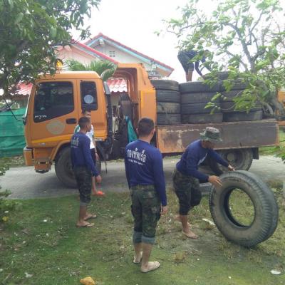 อบจ.สงขลา สนับสนุนรถบรรทุก (รถดั๊ม) นำยางรถยนต์ เพื่อช่วยเหลือชาวบ้านที่ได้รับผลกระทบจากลมมรสุมซัดชายฝั่ง เพื่อบรรเทาความเดือดร้อนของชาวบ้านในโซนชายทะเลอำเภอระโนด