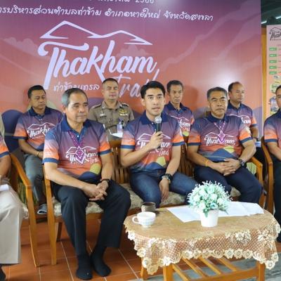 โดยมี นายสมบัติ พัฒนายิ่งเจริญ ปลัด อบต.ท่าข้าม กล่าวรายงานวัตถุประสงค์การจัดงาน // นายสินธพ อินทรัตน์ นายก อบต.ท่าข้าม กล่าวต้อนรับ // และผู้ช่วยศาสตราจารย์คำรณ พิทักษ์ ผู้อำนวยการอุทยานวิทยาศาสตร์ มหาวิทยาลัยสงขลานครินทร์ ร่วมแถลงข่าว