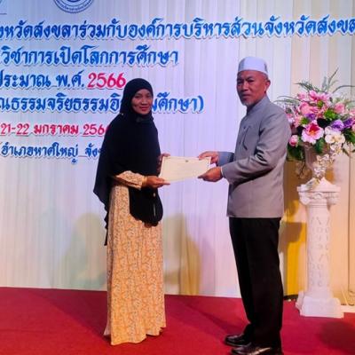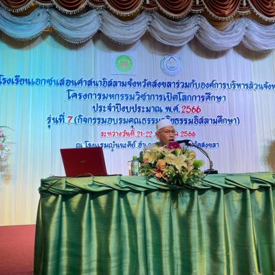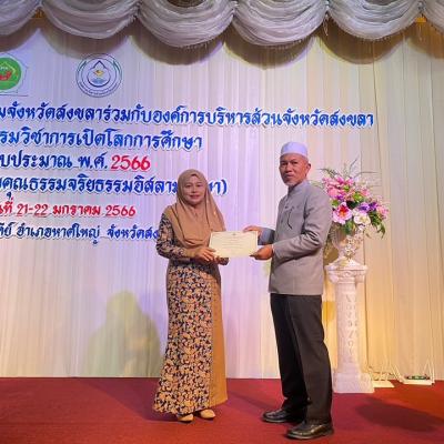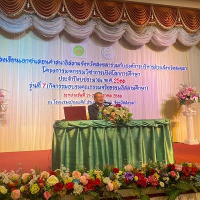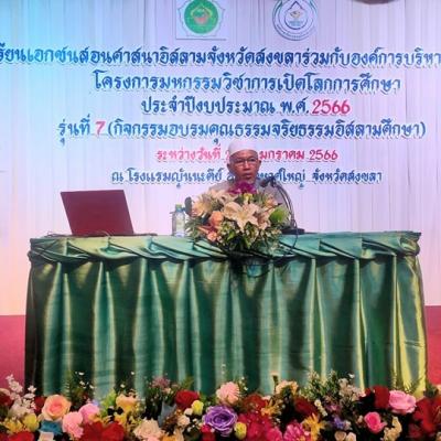 องค์การบริหารส่วนจังหวัดสงขลา ร่วมกับคณะกรรมการสมาคมโรงเรียนเอกชนสอนศาสนาอิสลาม จังหวัดสงขลา จัดโครงการมหกรรมวิชาการเปิดโลกการศึกษา ประจำปีงบประมาณ พ.ศ 2566 รุ่นที่ 7 (กิจกรรมอบรมคุณธรรมจริยธรรมอิสลามศึกษา) ซึ่งจัดขึ้นในระหว่างวันที่ 21-22 มกราคม 2566 ณ โรงแรมญันนะตีย์ อำเภอหาดใหญ่ จังหวัดสงขลา กิจกรรมในครั้งนี้ มีผู้เข้าร่วมอบรมคุณธรรมจริยธรรมอิสลามศึกษา ทั้งสิ้น 390 คน