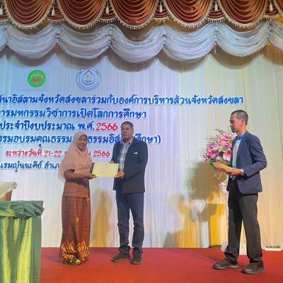 นายอับดลรอหมาน กาเหย็ม รองนายกองค์การบริหารส่วนจังหวัดสงขลา เป็นประธานในพิธีเปิด โครงการมหกรรมวิชาการเปิดโลกการศึกษา ประจำปีงบประมาณ พ.ศ 2566 รุ่นที่ 7 (กิจกรรมอบรมคุณธรรมจริยธรรมอิสลามศึกษา)