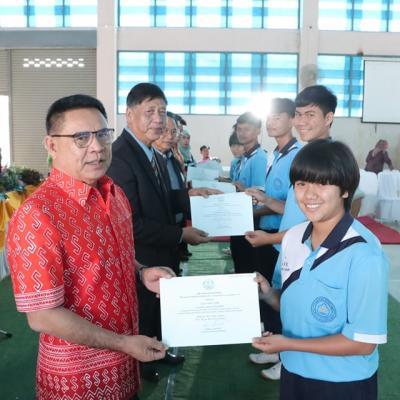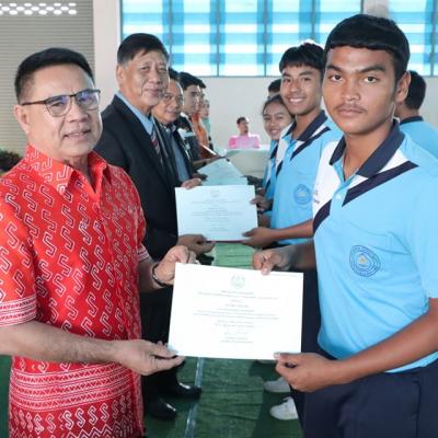 พร้อมด้วย นายภูวดล วงษ์โสภณากุล เลขานุการนายกองค์การบริหารส่วนจังหวัดสงขลา นายศิริชัย เอกพันธ์ รองประธานสภาองค์การบริหารส่วนจังหวัดสงขลา นายนราเดช คำทัปน์ สมาชิกองค์การบริหารส่วนจังหวัดสงขลา นายอุสมาน เอียดวารี รองนายกเทศบาลตำบลเกาะแต้ว ผู้อำนวยการโรงเรียน อบจ.สงขลา พิทยานุสรณ์ นางสาวมัสกะห์ เจะแม็ง ผู้อำนวยการโรงเรียนเกาะแต้วพิทยาสรรค์ นายเฉลียว เมฆบุตร