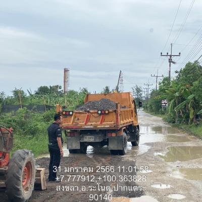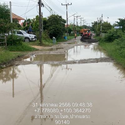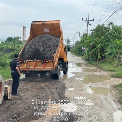 เพื่อเป็นการบรรเทาความเดือดร้อนให้กับประชาชน อบจ.สงขลา จึงได้สนับสนุน รถตักหิน จำนวน 1 คันและรถบรรทุก 6 ล้อจำนวน 2 คัน เพื่อขนตักวัสดุกากยางมะตอย จากหมวดการทางสทิงพระ ให้กับเทศบาลตำบลปากแตระ อำเภอระโนด ในการถมถนนเพื่อให้ประชาชนใช้สัญจรไปมาได้สะดวก